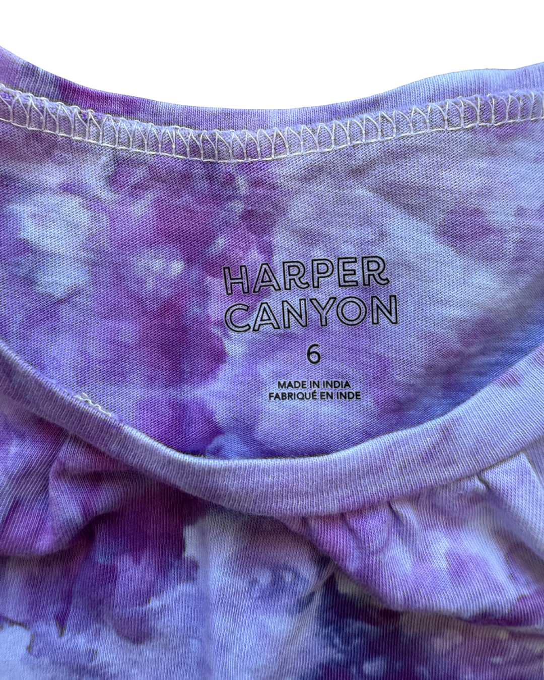 This Harper Canyon youth small (6) long sleeve T-shirt has been upcycled by adding beautiful shades of purple with ice dye.